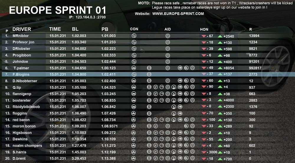 Mukodo online Hotlap cucc, offtrack figyelovel, online listaval: