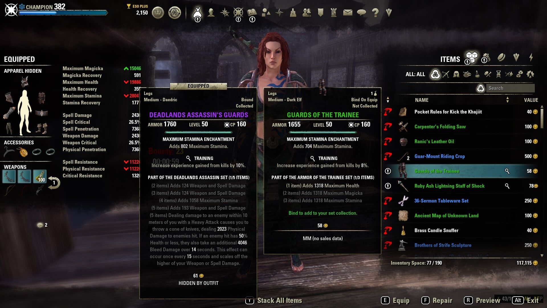 Mivel a karakteren van 7 darab pancel, 3 gyuru, meg egy vagy ket fegyver (a ketkezes fegyverek 2 darabnak szamitanak), igy van 12 helyed a szetteknek. Vallast es fejest a monster szettekre erdemes meghagyni, a tobbi 10 helyre meg ki lehet kombinalni 2x5 teljes szettet es annak bonuszat.