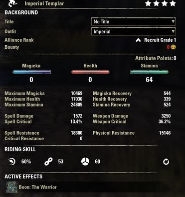 A WD-det növeli a weapon damage-es medium set ( 5 db-nál a 2 szintű passzív esetén +15% WD) divine trait-el ( lehetőleg Legendary legyen, mert az adja a legnagyobb értéket) Itt találsz leírást az armor set-ekről . A mundus stone a divine trait miatt értelem szerűen Warrior. A fegyver lehetőleg legendary, nirnhoned trait-el. Skill, ami major brutalityt ad, pl. a rally (2H), hidden blade(nightblade), vagy potiból, ami ugyan ezt adja. A fighter guild flawless dawnbreaker skillje a 4. szinten ad még 5%-ot passzívan, ha ki van téve. Mivel templar vagy az aedric spear utsó passzívja a 2. szinten szintén ad 6%-ot. A weapon enchant az weapon damage-es legyen ( a legendary az +174-et ad).