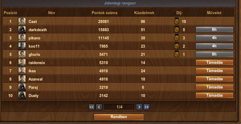Kösz a tippet!Katona,lovas és íjász ellen igaz,hogy csak 4 parittyással de sikerült egy kicsit közelebb jutnom Paruuch elfoglalásához:)