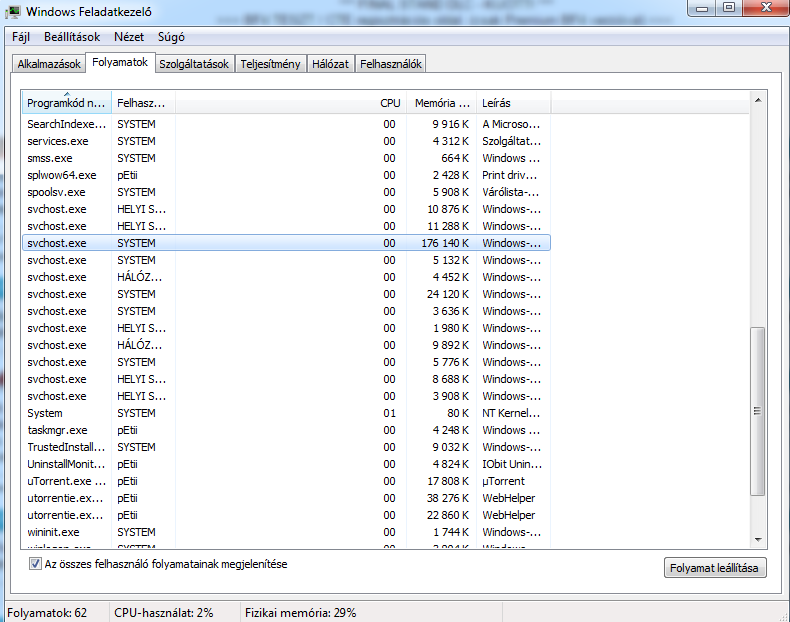 Nekem ennyi ilyen svchost.exe van, de egyik se mutatja, hogy a procit használná.