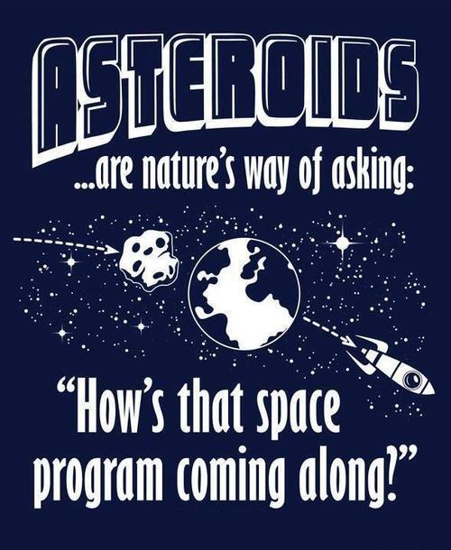 Szóval ebből akár még az is előfordulhat, hogy bekapunk egy ~ 1km átmérőjűt ami mondjuk 2 hónap múlva becsapódik kb itt meg itt... Na akkor mivan? Akkor b...hatják a festést meg a napszelet meg a hasonló csak sok-sok év alatt működő ötletet...