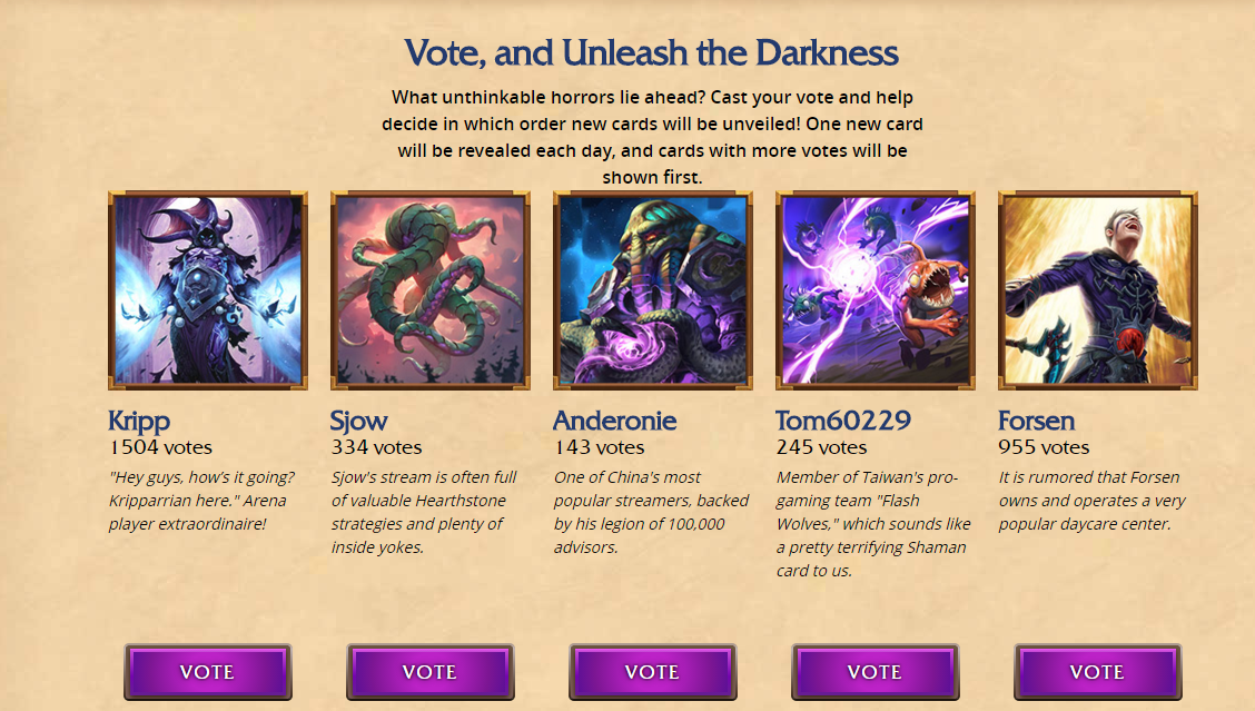 Zozo0122 #29311 Szerintem nagyon jól látja a C'Thun's Chosen erejét. Mindenki azt mondja, hogy az egy gyenge lap. Szerintem az a lap nagyon erős, szinte Shredder szint. C'Thun deckben meg...bennem a továbbfejlesztett battlecry shaman körvonalazódik C'Thunnal első nap :) Csak legyen jó az új shaman legend, és crafterino :D