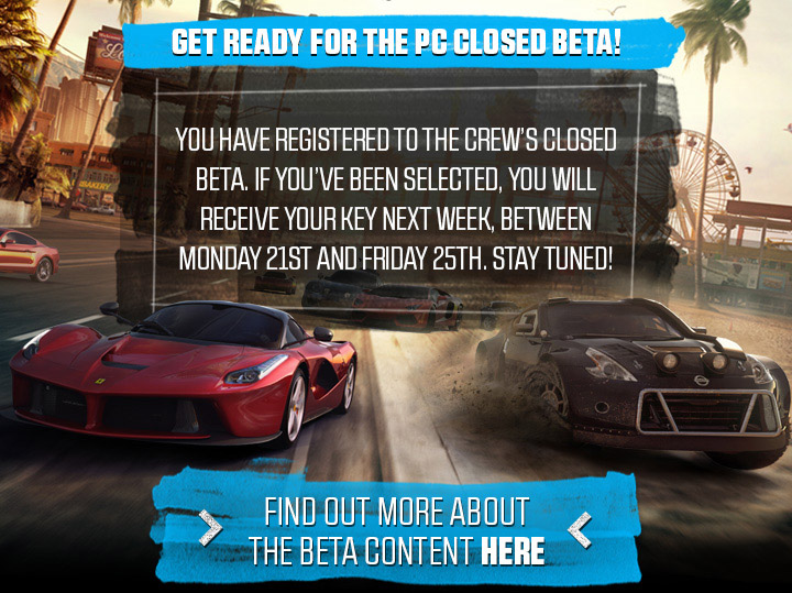 "Because we can’t wait for you to play, The Crew Closed beta will start on July 21st!" -