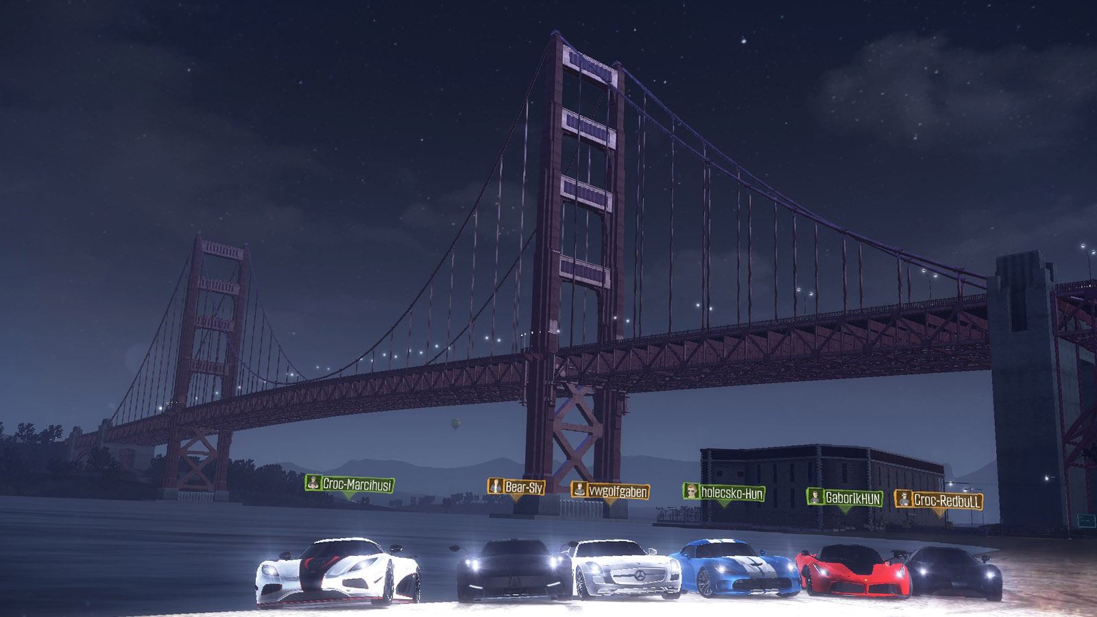 2× gduck007, 2x vwgolfgaben, 2x Sir_Hedge és 1x Darkkoi, velük tudtam együtt gurulni. Rajtuk kívül 1x Szabi, de kb. fél perc után lefagyott a játék, 1x GeRI0104, szintén pár perc után lefagyott, amikor egy harmadik valakit hívott be a crew-ba és pár napja néhány másodpercre egy layerben voltam SIXNIN3-al, de ez tényleg csak 3-4 másodperc volt, aztán el is tűnt. Konkrétan ennyi.