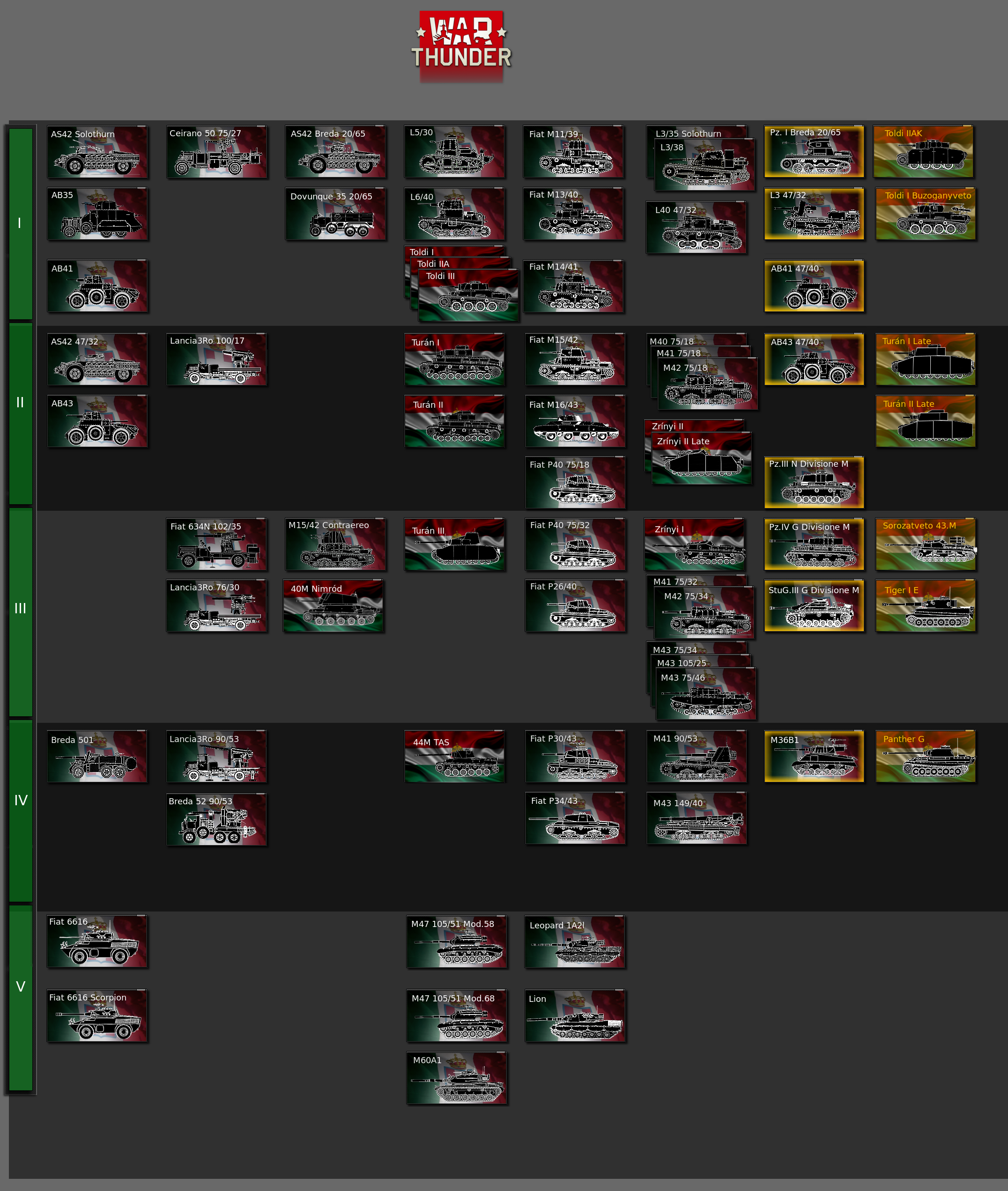 Az olaszok kezdték el kidolgozni a magyar-olasz tech tree alapötletét, mi pedig (azaz főleg Hebime :D ) segítünk nekik a magyar takokkal való kiegészítésben.