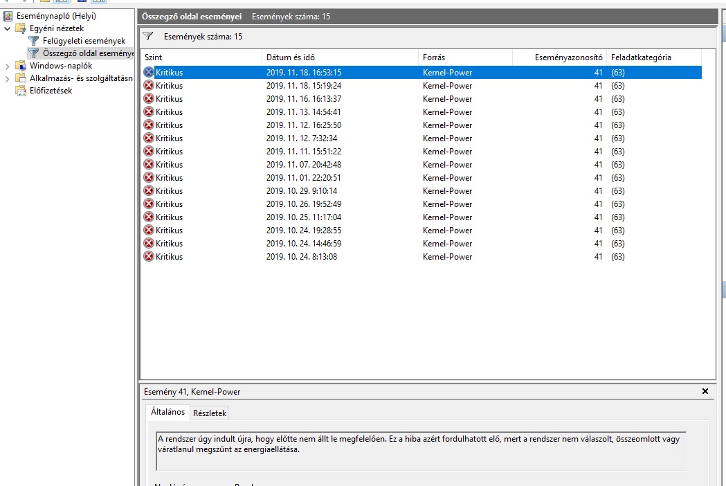 plusz a 41-es típussal már el lehet indulni ezen az úton is, a kernel-power 41 63 már egy jó kezdőpont a hibakereséshez, a "véletlenszerűen újraindul" helyett -