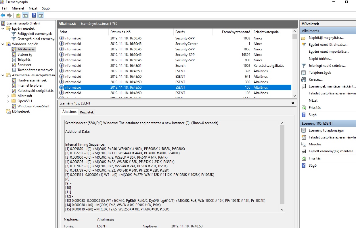 Az esemény naplót megtalálta hamar az op rendszer, így nem kellett keresgetnem.
