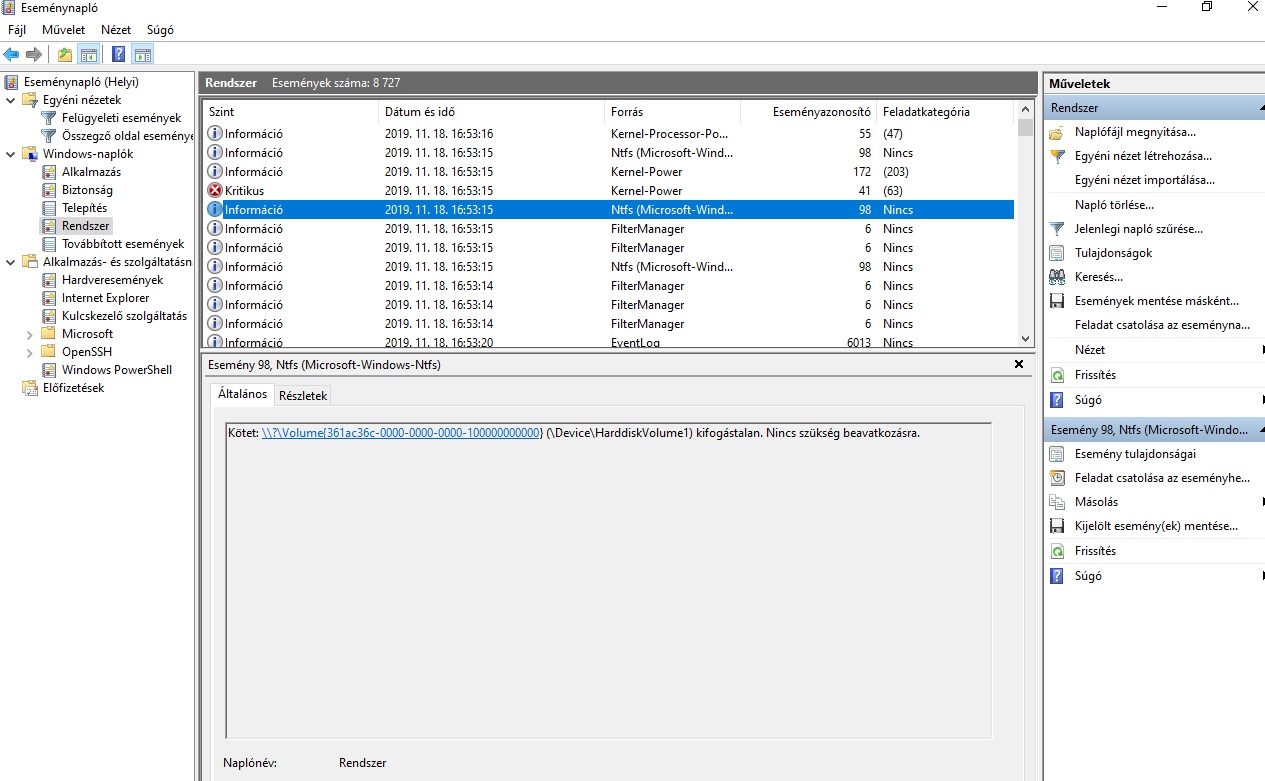 Ugyanott, csak nem a kritikus bejegyzéseket nézed, hanem a hibákat, stb. Bal oldalt a Windows naplók - Alkalmazás és/vagy Rendszer is egy kiindulási pont lehet, meg kell nézni az újraindulás előtti utolsó bejegyzések között van-e valami, ami összecsuklott vagy hibát jelzett... -
