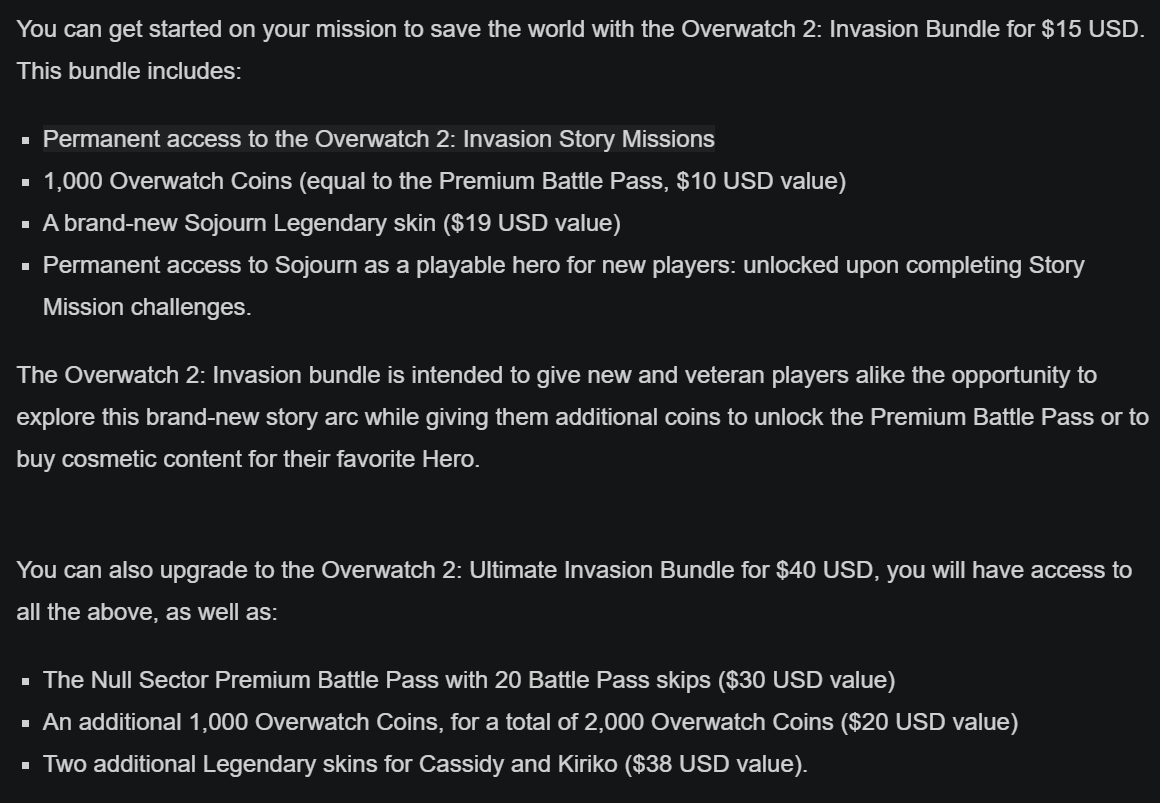 A skinek 1900 OW2 coinba kerülnek, a teljes bundle (mind az 5 skin, emote és egyéb dolgok) 6800 coin! Az előzetesek szerint olyan 10 000 coint pletykáltak az emberek a különböző közösségi oldalakon.