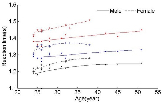 A reakcióidő kapcsán nincs ilyen fix bázis. Nagyobb a szórás az emberek között mint azon tipikus faktorok hatása amik rontják az értéket. -
