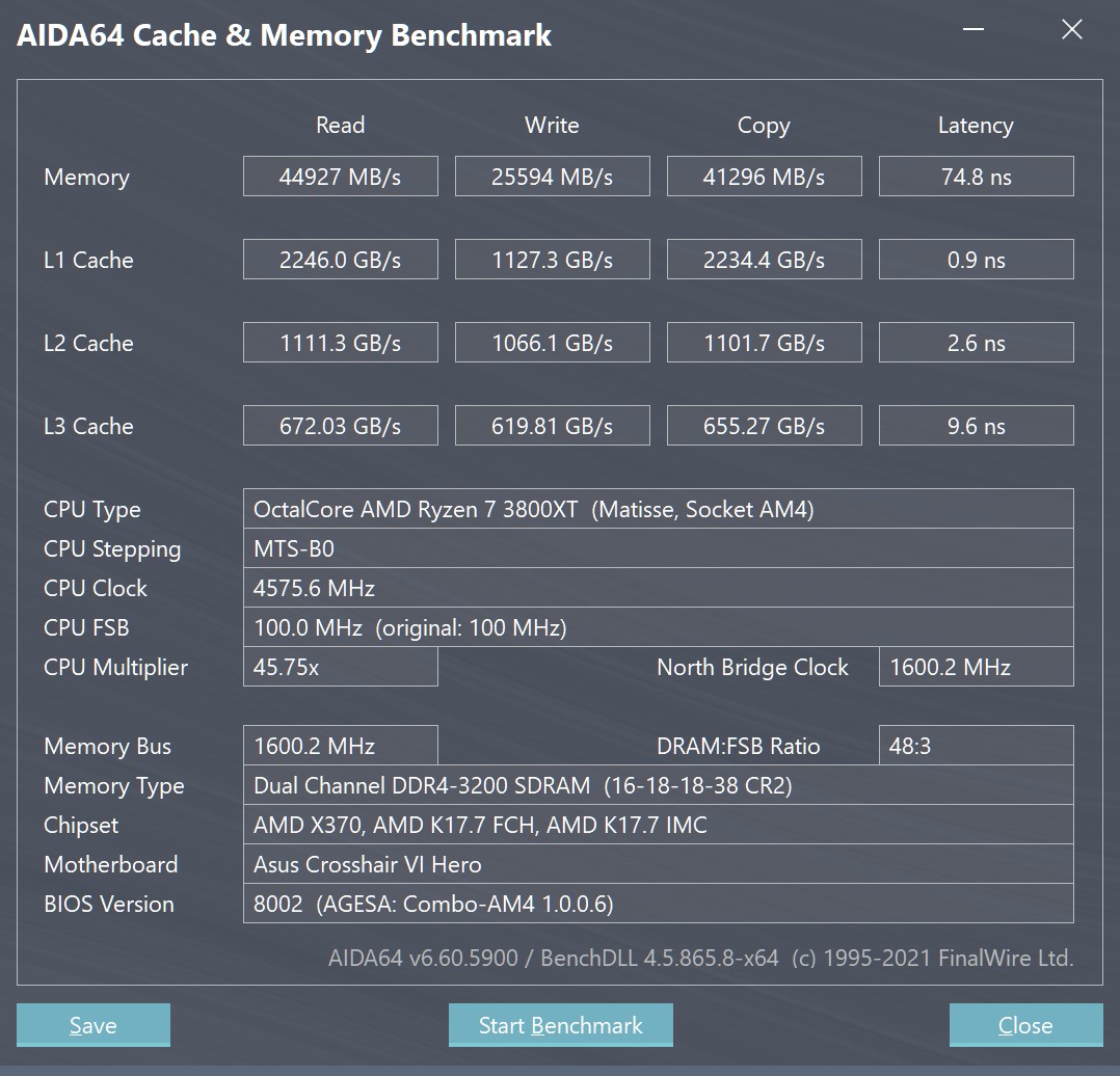 Szerintem a jó értéknek ~42500 körül kellene lennie. Az, hogy nagyjából a fele számomra azt jelenti, hogy a modul amikor ír, valamiért 1600MHz-en megy, tehát a natívon és nem az extrémen. -
