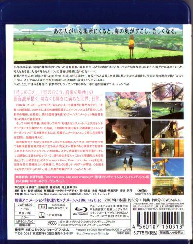 @levenetv: 5 centimeters per second. Kb egy eve leadtam ra amazonon a preordert, a DVD meg is jelent europaban es most is kaphato, tehat letezik hivatalos angol felirat, a bluray letezik japanban, de ugy tunik a ketto kombinacioja tul szep lenne ahhoz hogy igaz legyen :( -