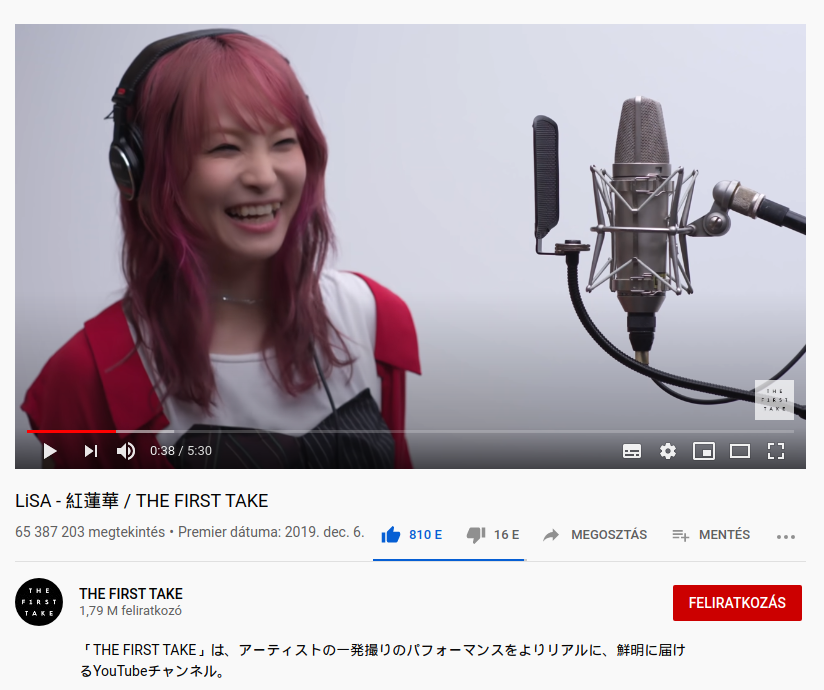 Épp most nézem-hallgatom. Messze nem olyan képzett a hangja mint LiSA-nak.