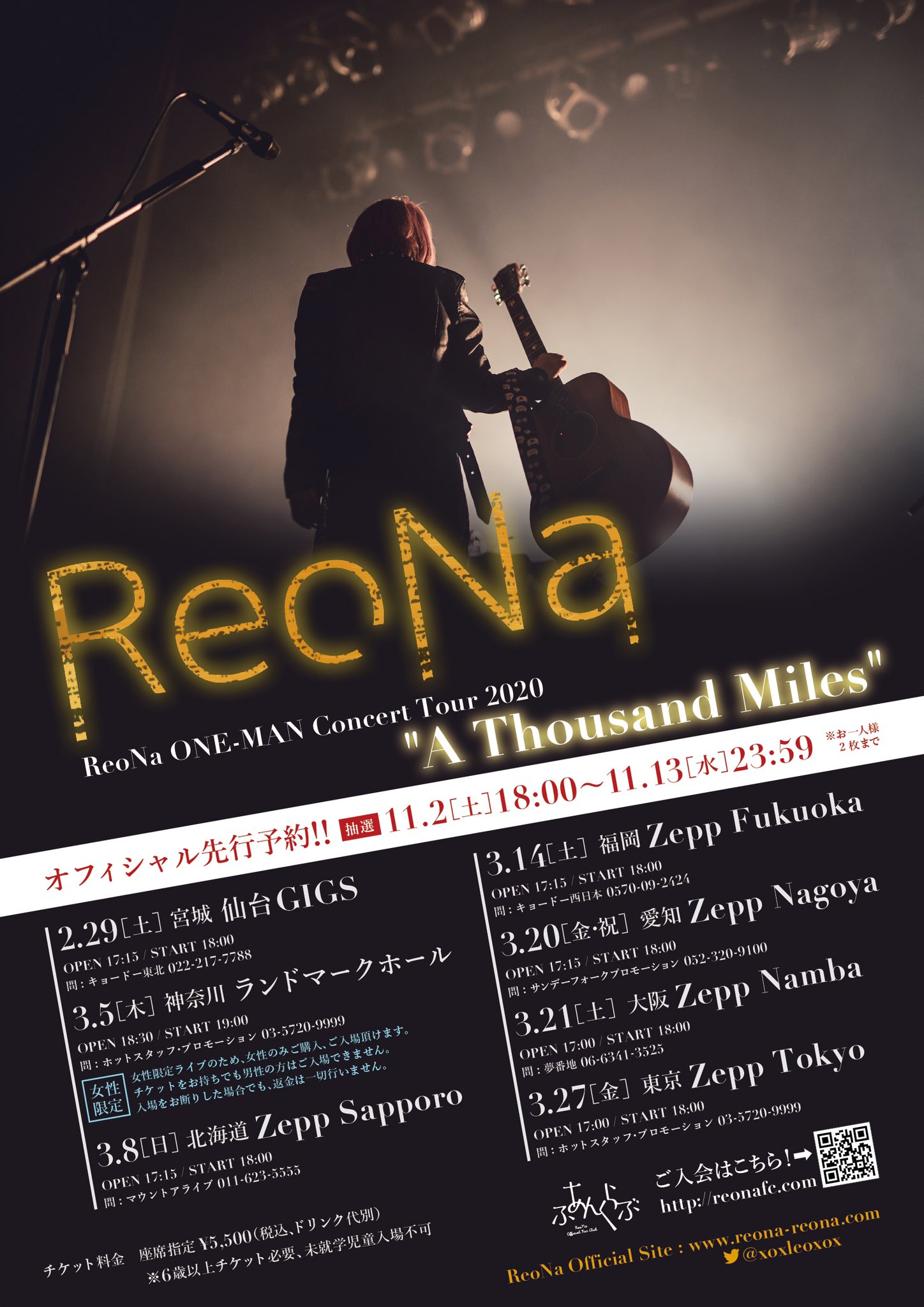 Ahogy nézem ReoNA fellépései mind ilyen egyszemélyes koncertek lesznek, legalábbis a plakátok alapján - csak ő és a gitárja. Érdekes koncepció, de úgy tűnik, hogy működik, mert nem is kapnak nagy csarnokokat sem (ez alól mondjuk LiSA kivétel, bár ő meg is tudja tölteni ezeket).