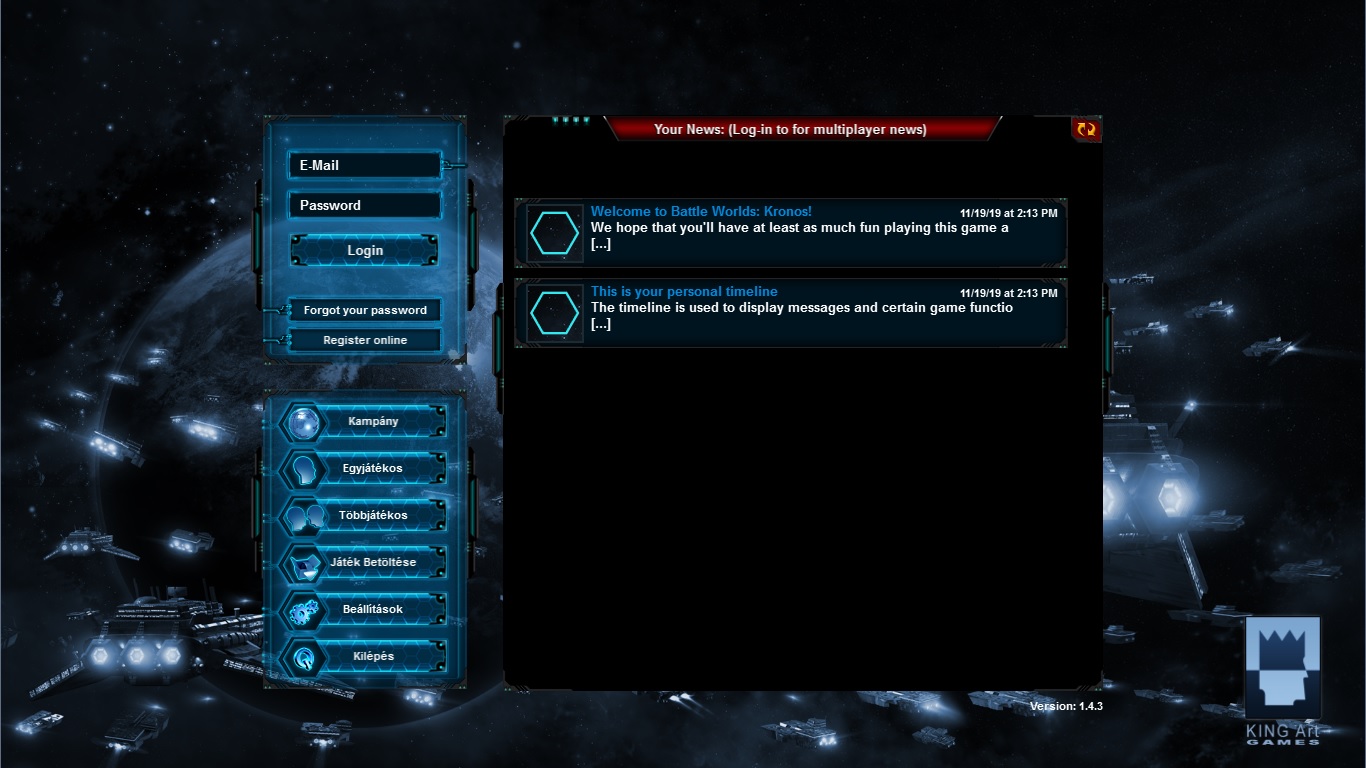 Elkezdtem fordítani a Battle Worlds - Kronos című, amolyan körökre osztott sci-fi játékot. A játék Unity engines, viszont eléggé könnyen lehet szerkeszteni a szövegeket. Ami a legfontosabb, hogy mindenféle hiba nélkül kezeli az ékezeteket, és szerencsére karakter limit nélkül lehet fordítani. Beszúrok egy képet a főmenüről: -