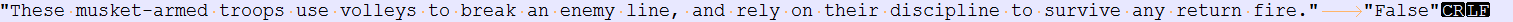 Szerzetes89 #52970 Bekapcsoltam, hogy minden láthatatlan karaktert jelezzen. Megjegyzem, az első sor minden esetben külön van a többitől ( a "These musket... " sorra és társaira gondolok), a hosszú szövegben pedig "\n\n" van, ez meg is jelenik szépen. CRLF gyakorlatilag minden hivatkozás végén ott van. Kép: SPOILER! Kattints ide a szöveg elolvasásához!