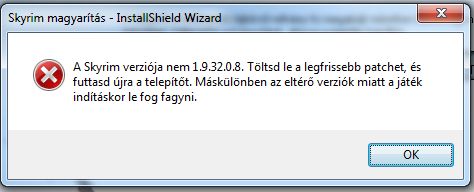 Üdv. Skyrim-re akartam rávarázsolni honosítást,de dob egy ilyet telepítés közben: