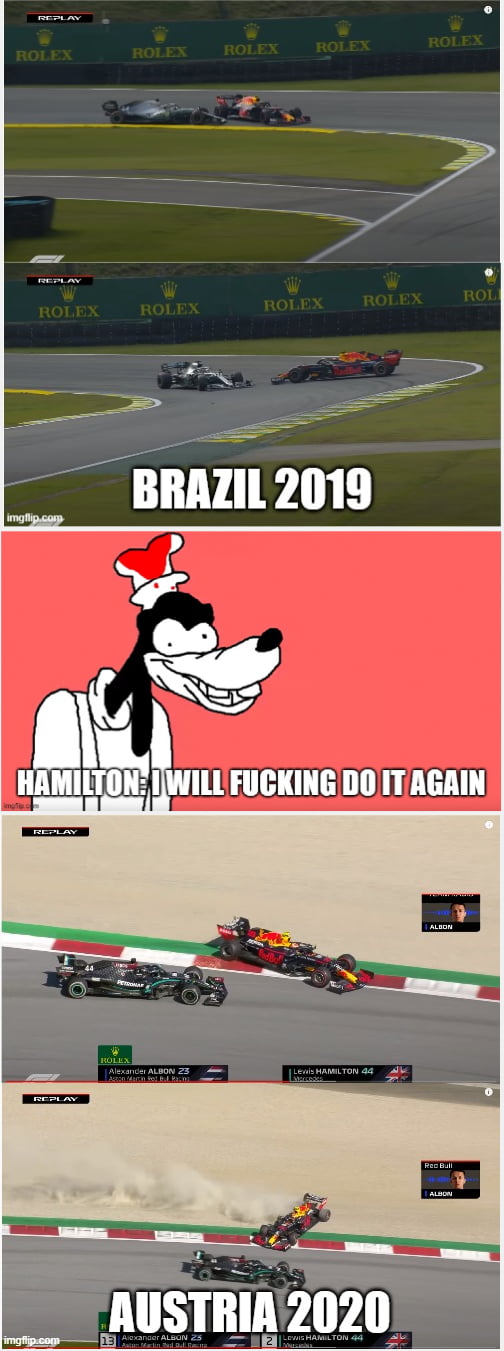 szerintem jól látszik h Albon szemszögéből ez egy sima előzésnek tűnt , csak Hamilton nem tudta / akarta elfogadni