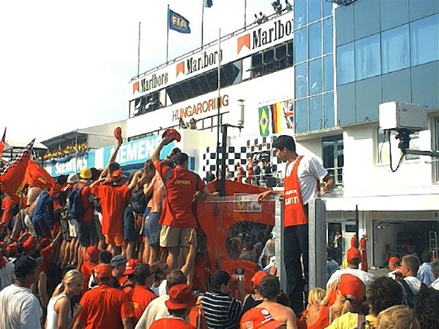 Szerintem tök buli ahogy áramlik be a nép! Én 2001 ben voltam fent célegyenes előtti kanyarban voltunk. Mire Schumiék felálltak a dobogóra mi is odaértünk!