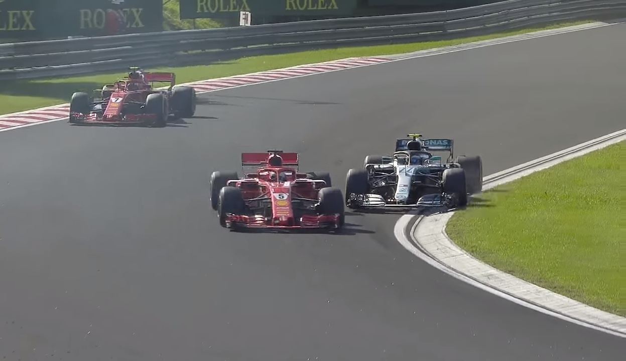 Hol ment a fű szélén? Kérlek mutass róla egy pillanatképet. Bottas vert helyzetben volt, Vettelé volt a pozíció, Bottas oda nem fért már be ergo el kellett volna engednie. Ha ugyanebben a pálya-pozícióban vannak a kanyarban, de Bottas akart volna előzni (mert tegyük fel, hogy neki van frissebb ultralágy gumija), akkor sem szúrhatna oda be, mert nincs hely. És helyet hagyni nem csak kormányzással lehet / kell, hanem fékezéssel is, mert nem mint egy vak idióta nekimegyünk a másiknak. Ennyi erővel a sikánt sem kell bevenni, mert ahhoz fékezni kell. -