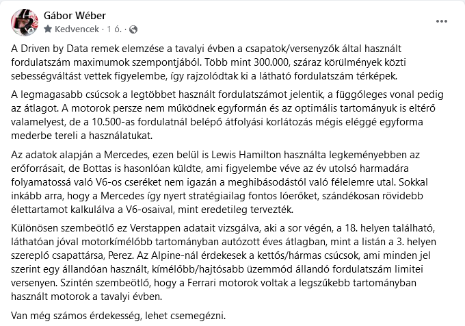 Ezt nem értem, akkor szokás ilyeneket írni, ha egy csapat végi dominálja az évet, de a Honda és Verstappen nélkül ez is csak egy szokásos Merci év lett volna. Én nagyon remélem, hogy jövőre is ott lesznek, hánynék egy újabb sima Merci év után, pláne ha Russel is megkapja a Bottastól megörökölt wingman szerepet, amit Hill annyira próbál belemagyarázni... (akkora csalódás az az ember, pedig anno neki szurkoltam)