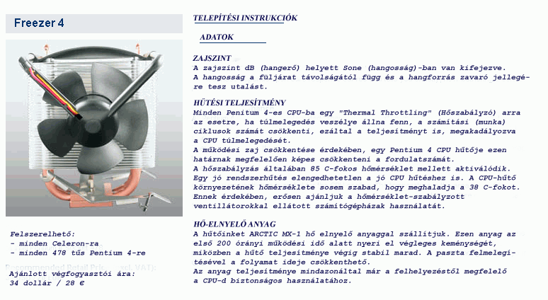 A FAQ újabb marketing szövege szerint egy Pentium 4 nem tud túlmelegedni az ún. Hőszabályzó miatt - lentebb írtam már - , ami azt jelenti, hogy 85C-nál a CPU teljesítménye drasztikusan lecsökken, megakadályozva önmagát az elégéstől.