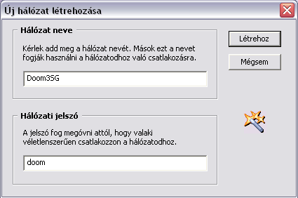 Na itt az Új hálózat létrehozásánál (ami a középső szöveg...) itt csak szervernevet és jelszót kell megadni (kis és nagybetű számít!!!!) és ezt megadni a meghívottaknak.....