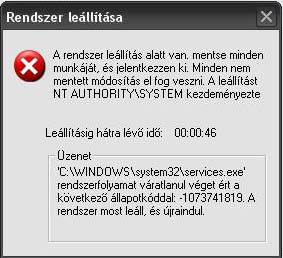 kl24h #15989 SPOILER! Kattints ide a szöveg elolvasásához!Ez szerintem nem veszelyes dolog, mert ilyen lehet tiszta gepen is csinalni, mert pl. ha felnyitod a Command Prompt-ot es beirod, hogy "shutdown -s", akkor egy hasonlo uzenet fog megjelenni.