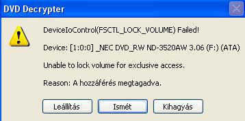DVD írásnál ezt a hiba üzenetet kapom, ez mit jelent?