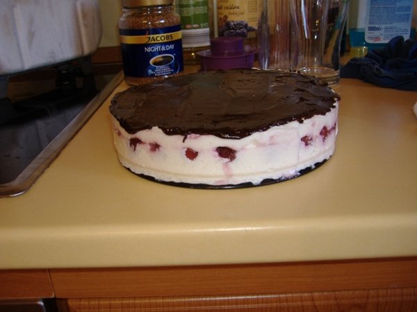 rudinak az a verziója, amikor is nem volt kedvem rudakat formálni, így lett belőle túró rudi torta. és raktam közé meggyet. szóval a recept: