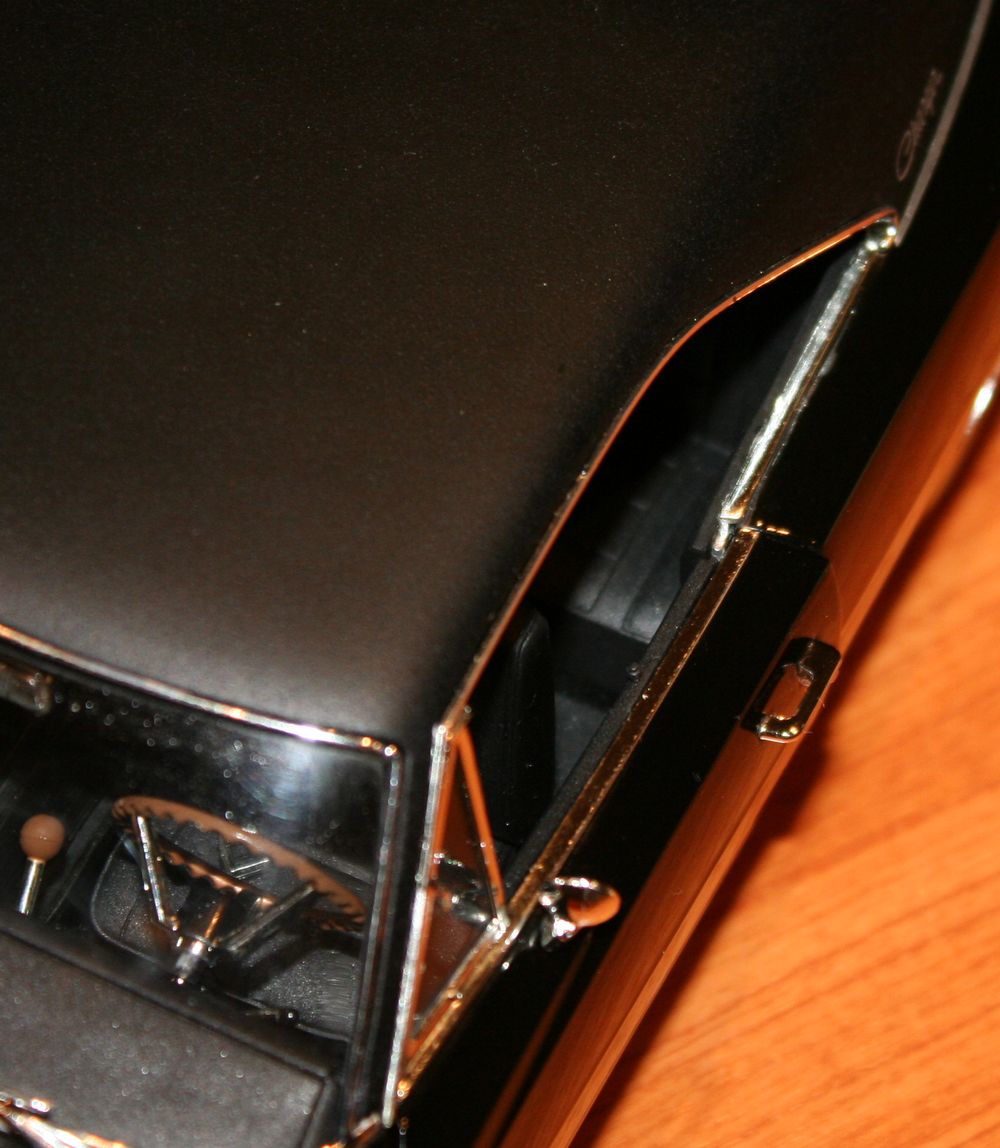 Az ajtók elállnak, a festés a hátsó csomagtér előtti részen nem egyenletes (mellesleg ez az ERTL-nél és a Highway-nél is hibajelenség, csakúgy, mint a krómozás hibái, a maszatos, ragacsos elemek tömkelege...), a krómozás az ajtók tetejénél látható módon hiányos, a műanyag kifehérlik alóla.