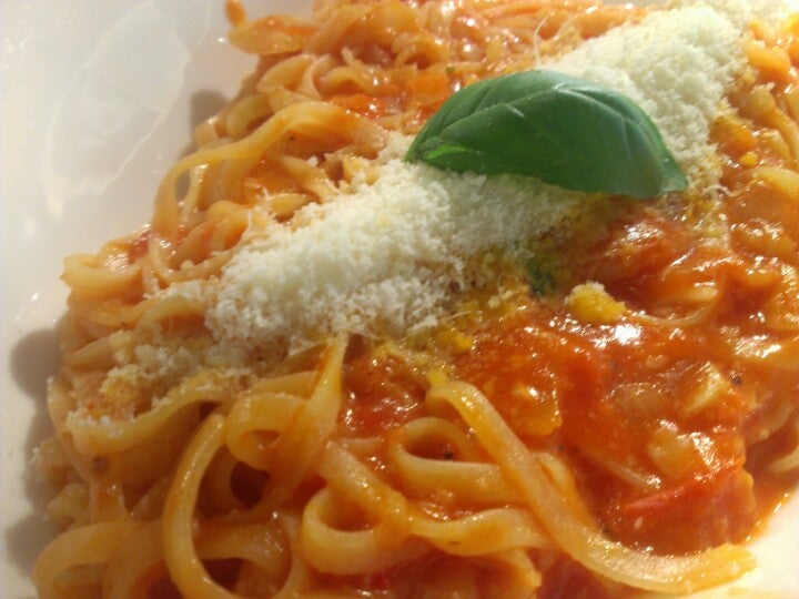 Paradicsomos tagliatelle tészta friss bazsalikommal,parmezánnal.