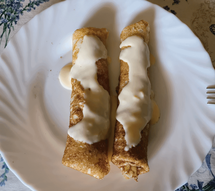 Saját sütésű palacsinta, saját készítésű vanília öntettel