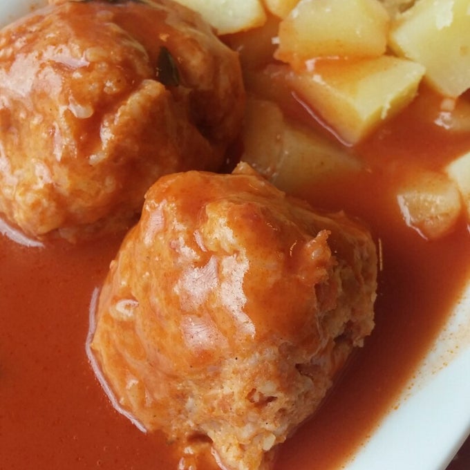 paradicsomos húsgombóc,főtt krumpli