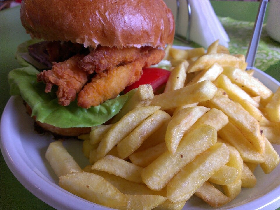 petrezselymes rizs, rántott sajt/máj/csirke/patisszon -