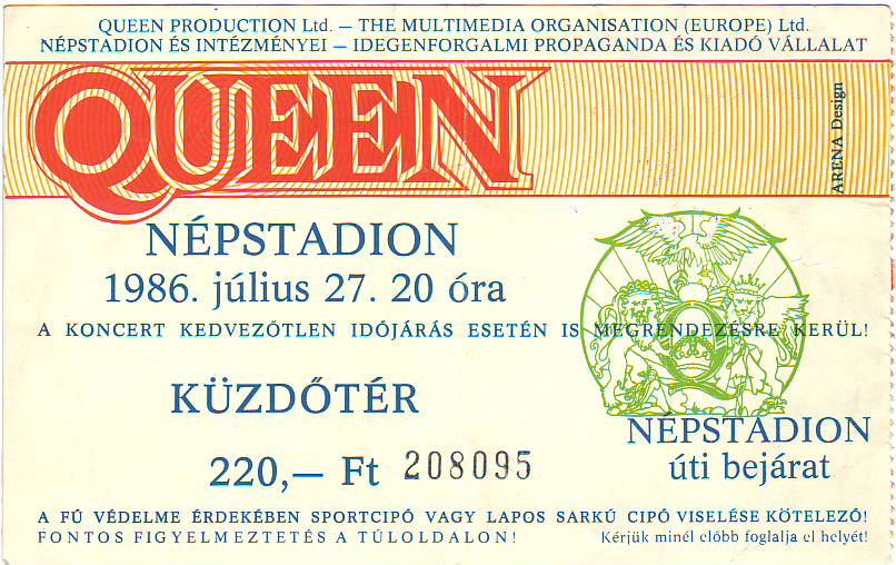 A Live At Wembley DVD galériájában benne van az ottani jegy. Érdemes összehasonlítani -