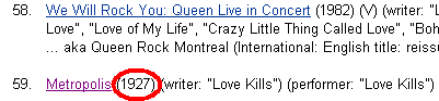 Nézd csak meg jól! Az 1927-es Metropolis című film is ott van a listában. Bárminemű kapcsolatot is feltételez az imdb, elég hihetetlen, hisz akkor Freddie még nem élt. -