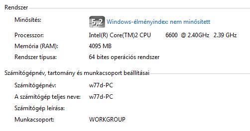én elhiszem, hogy furcsáljátok a 64bit-es rendszer alkalmazását, de hidd el, amíg tökéletesen működik nekem nagyon jó! Amúgy nem lenne ciki a 32bit, de ahol vettem a gépet ott javasolták nekem a 64bit-et, én meg elfogadtam és hangsúlyozom, eddig nem bántam meg! -