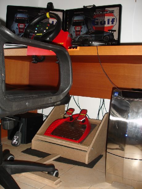 G25-nek is ugyanolyan a pedál hátulja, ki lehet támasztani. Nekem konkrétan egy könyv volt oda, meg a parketta szegő oldalához téve, bal oldalt a gépház, jobb oldalt meg semmi. Fél évente ha 2x kicsúszott maximum... -