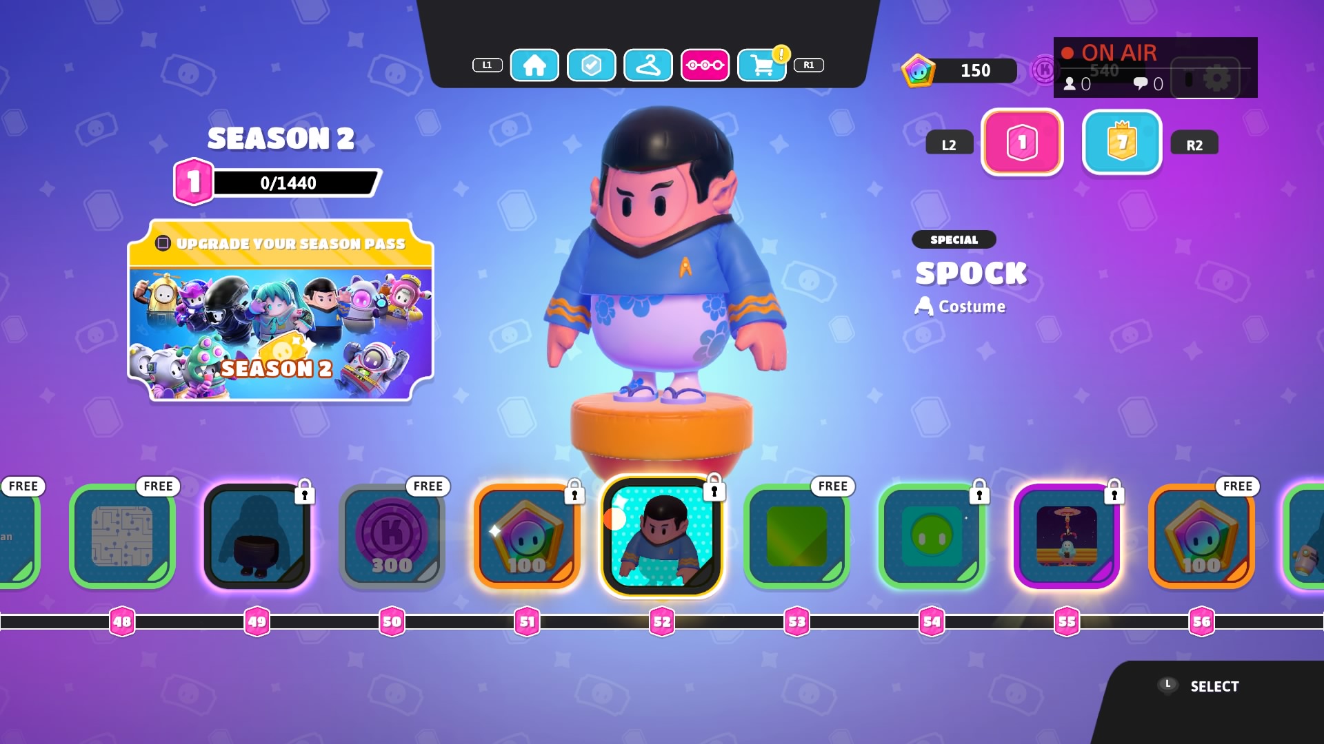 A Fall Guys mostani Battle Passben űr tematika van, 2 star trekes cucc is van közöttük: Hughie sisakja, és Spock :)