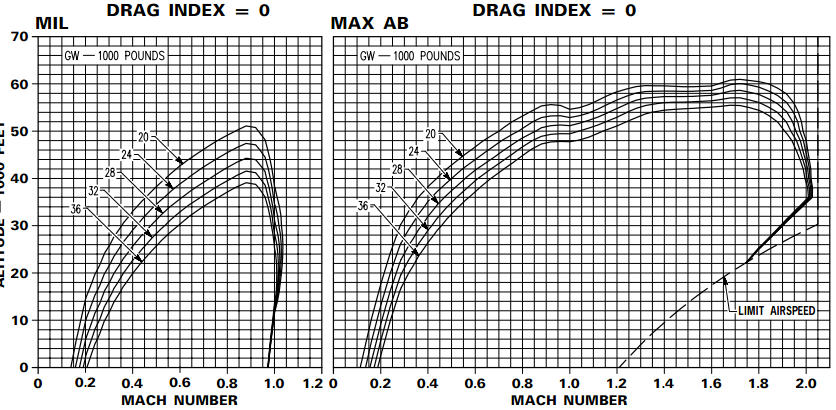 Egy idő után vízszintes repülésben a hangsebesség átlépése is lehetetlenné válik. Ahogy nő a magasság a hajtómű teljesítményének csökkenése ellenére a friction drag annyira kicsi lesz, hogy a wave drag ellenére lehetséges a szuperszonikus repülés. DI = 250 esetén csak zuhanásban és full utánégetővel érhető el a hangsebeség, bőven túl a harcászati tartományon.